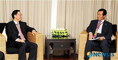 아세안+3 특별재무장관회의 참석차 태국 푸껫을 방문 중인 윤증현 기획재정부 장관은 22일 오전 라구나 호텔에서 셰쉬런(謝旭人) 중국 재정부장과 회동했다.