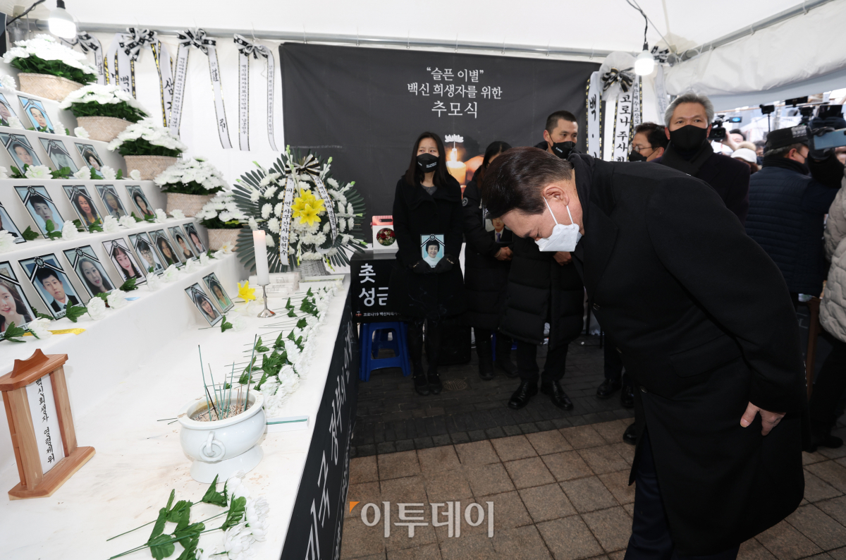 [포토] 코로나 백신접종 사망자 분향소 찾은 윤석열