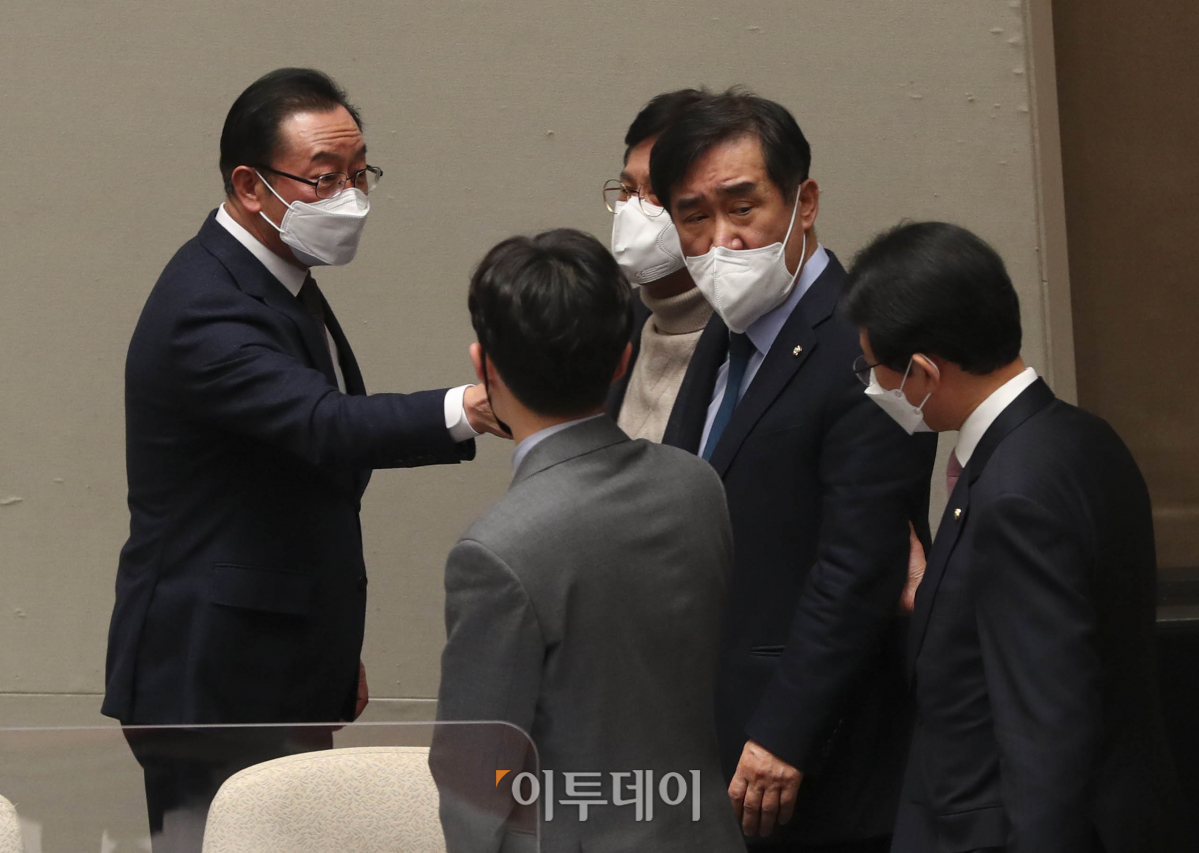 [포토] '정회선언' 이종배 예결위원장, 항의하는 맹성규 민주당 간사
