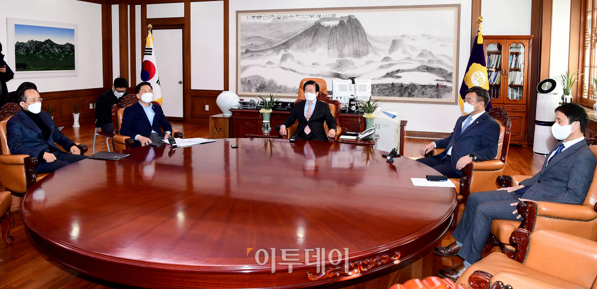 [포토] 추경 논의 위해 회동한 국회의장-여야 원내대표