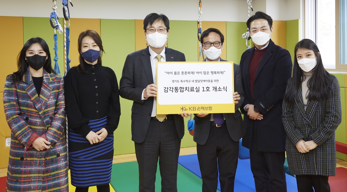 지난 25일에는 경기도 광주시에 위치한 특수학교인 동현학교에 첫번째 감각통합치료실을 설치하고 개소식을 진행했다. KB손해보험은 올해 총10개 학교에 감각통합치료의 신규설치와 리모델링을 지원하고 발달장애 아동을 위한 교육 프로그램을 운영할 예정이다.