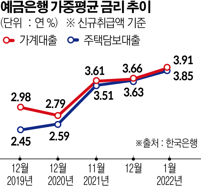 올해 1월 가계대출금리가 3.91%를 기록하며 2014년 7월 이후 최고치를 기록했다.