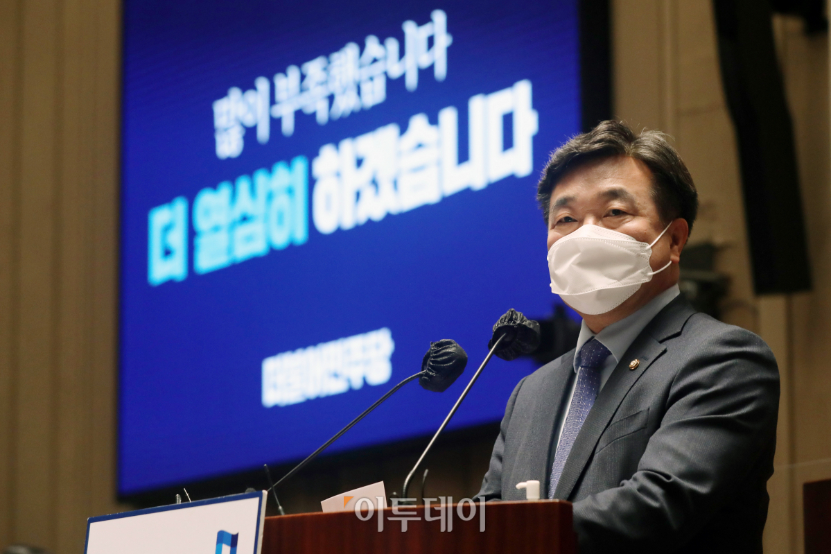 더불어민주당 윤호중 비상대책위원장이 11일 오후 서울 여의도 국회에서 열린 의원총회에 참석하고 있다.