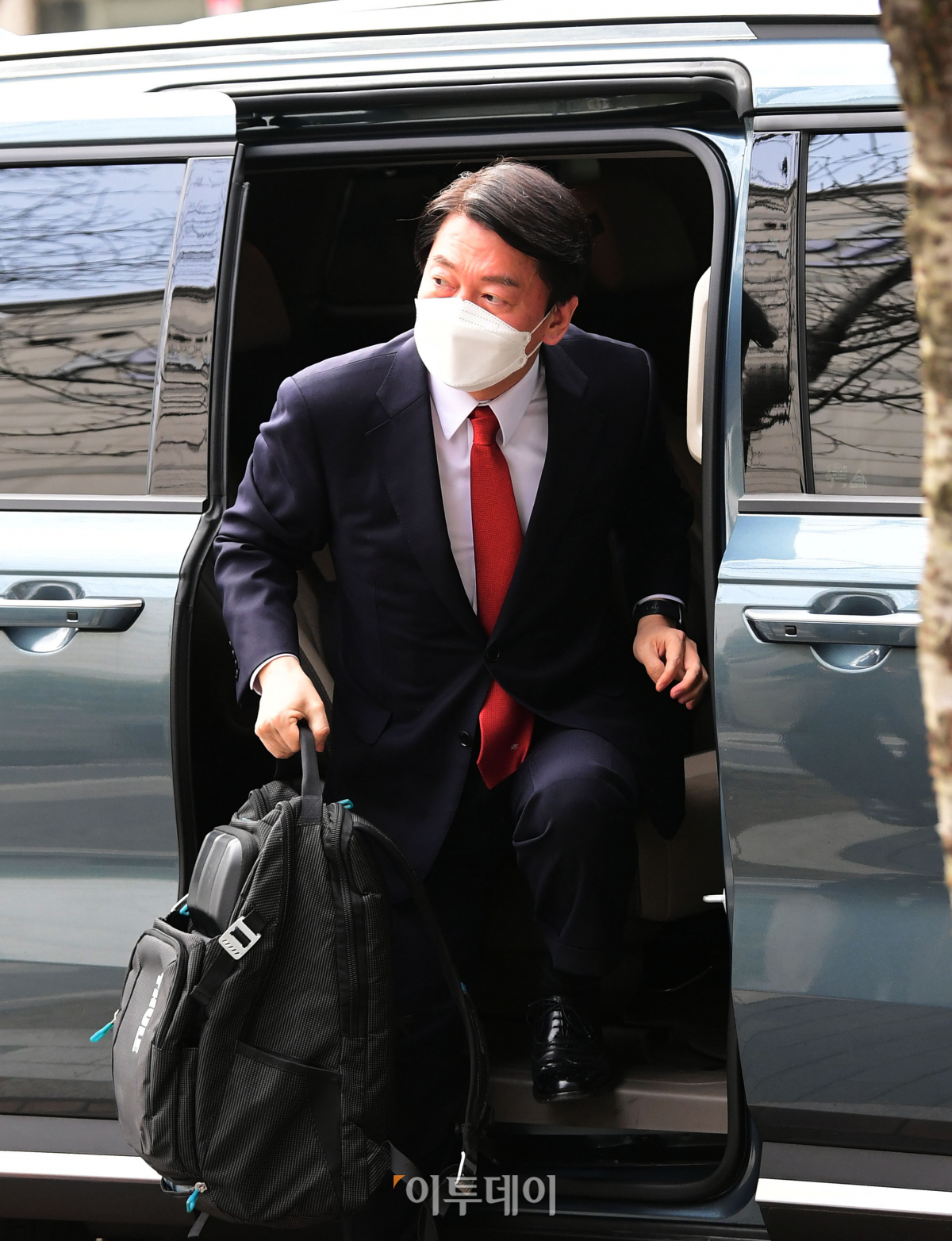 안철수 인수위원장이 15일 서울 종로구 통의동 금융감독원 연수원에 마련된 인수위 집무실에 첫 근무를 위해 출근하고 있다. 국회사진취재단