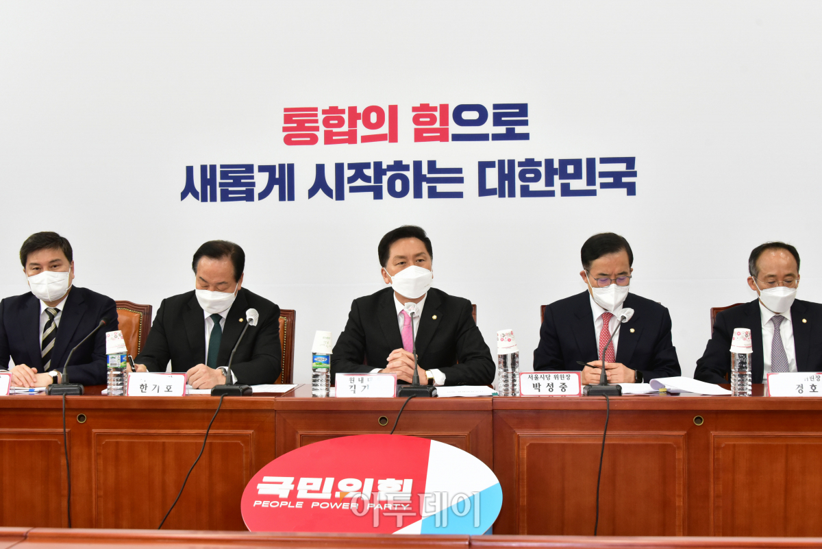 국민의힘 시도당위원장 회의가 15일 서울 여의도 국회에서 열려 김기현 원내대표가 발언하고 있다.
