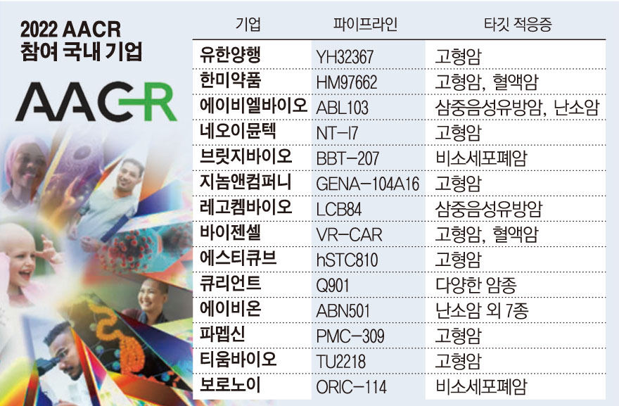 16일 이투데이 취재 결과 4월 8일부터 13일까지 미국 루이지애나 뉴올리언스에서 진행되는 올해 AACR에서 유한양행과 한미약품을 비롯해 에이비엘바이오, 네오이뮨텍, 브릿지바이오테라퓨틱스, 지놈앤컴퍼니, 보로노이 등 전통 제약사부터 상장 바이오기업, 상장 예정 기업까지 다양한 국내사가 연구 결과를 발표한다. 초기 연구 결과 공개가 주를 이루는 AACR은 글로벌 항암 신약의 방향성을 확인하는 것은 물론 기술이전 및 파트너십의 가능성을 타진할 기회의 장이다.