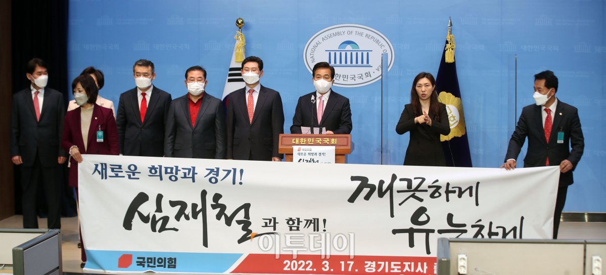 심재철 전 국회부의장이 17일 서울 여의도 국회 소통관에서 기자회견을 열고 2022 지방선거 경기도지사 출마를 선언하고 있다.