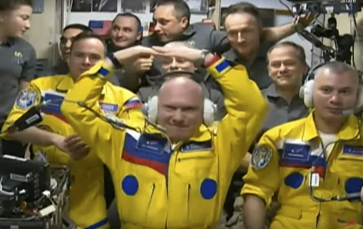 국제우주정거장(ISS)에 18일(현지시간) 도착한 3명의 러시아 우주비행사가 우크라이나 국기 색깔과 같은 노란색과 파란색이 섞인 우주복을 입고 있어 관심을 끌고 있다. 이들은 지난달 말 러시아의 우크라이나 침공 이후 처음으로 ISS에 도착한 우주인들이다. 이들은 우주복 색과 관련한 질문에 “선내에 노란색 소재의 우주복이 많이 쌓여 있어 선택했다”며 확대 해석을 경계했다. 여전히 뉴욕타임스(NYT)는 우주비행사가 일상적으로 착용하는 의상은 차분한 경향이 있다며 이를 우연이라고 믿기는 어렵다고 분석했다. AP연합뉴스