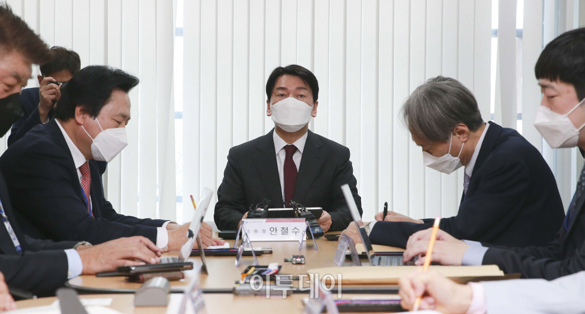 안철수 인수위원장이 21일 서울 통의동 인수위 회의실에서 열린 코로나19비상대응특별위원회 제1차 회의에서 발언하고 있다. 국회사진취재단