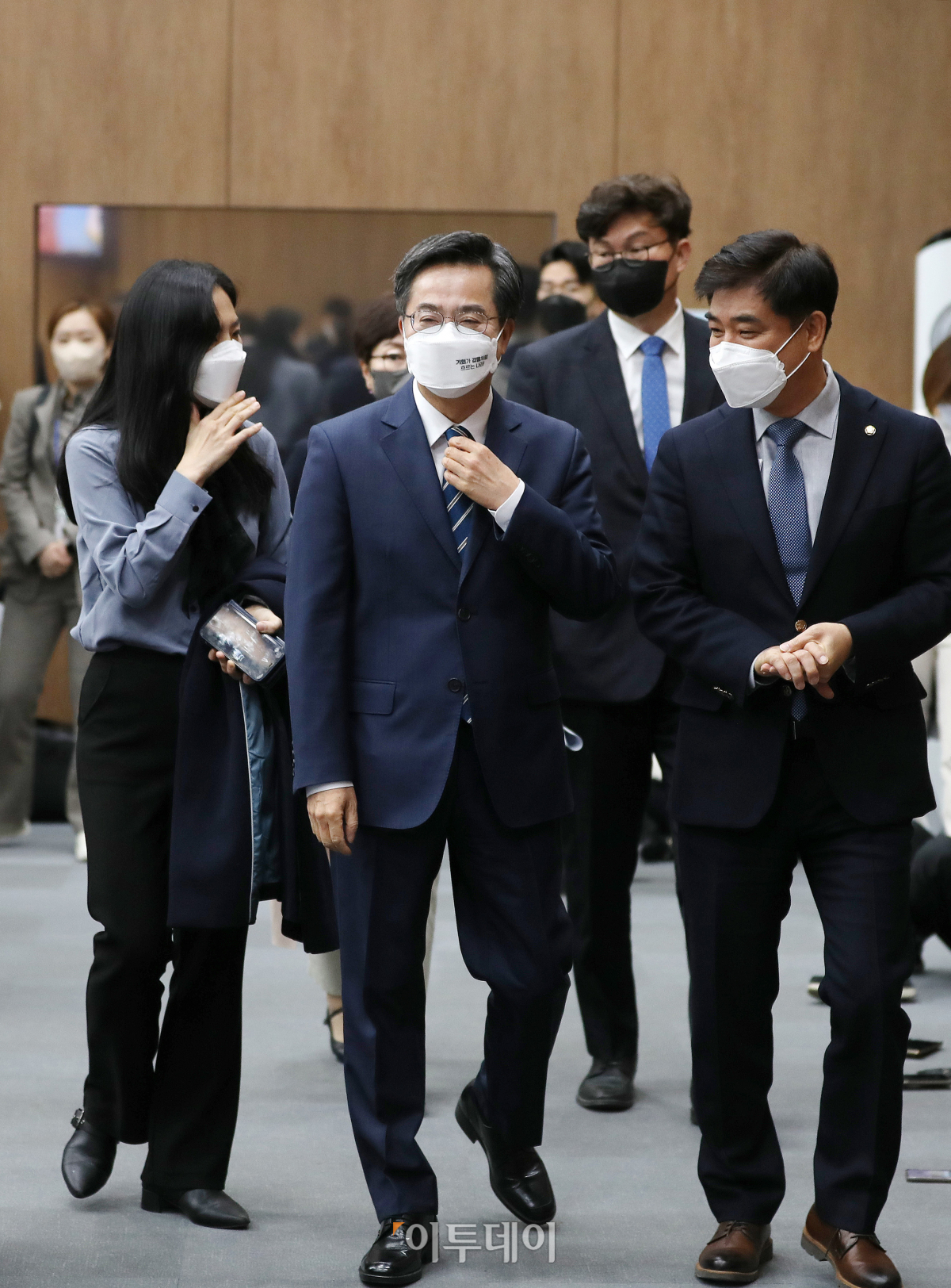김동연 새로운물결 대표가 31일 오전 서울 여의도 국회 소통관에서 6·1 지방선거 경기도지사 출마 선언 기자회견을 하기 위해 회견장에 들어서고 있다.