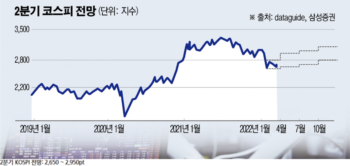 삼성증권은 2분기 코스피 범위를 2650~2950선으로 제시했다.