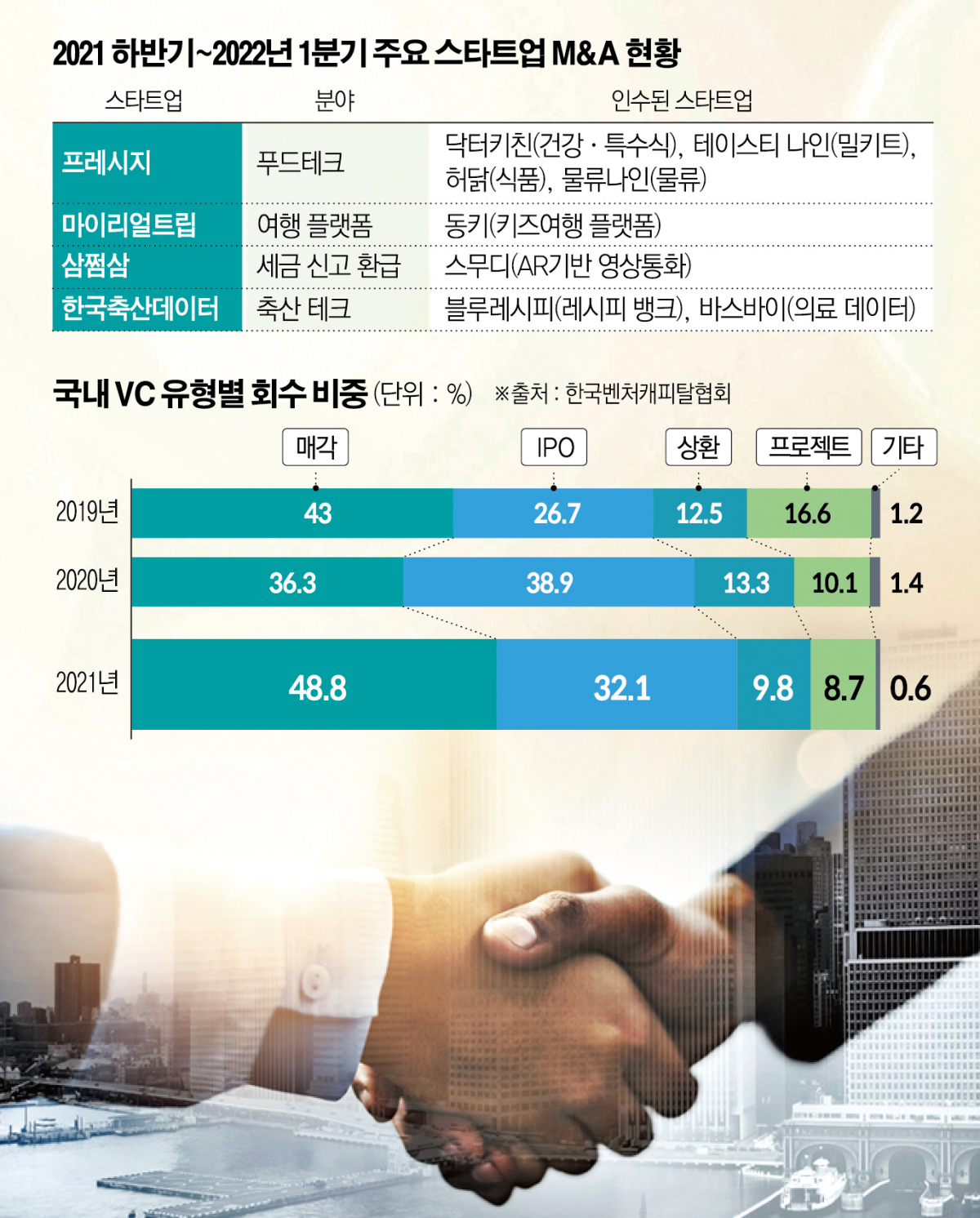 VC·벤처 업계에서는 스타트업 생태계 전반의 M&A가 지금보다 더 활성화돼야 한다고 입을 모은다. IPO가 쉽지 않은 국내 증권 시장에서 M&A가 성공적인 엑시트 전략으로 기능하며, 업계의 선순환을 일으킬 수 있기 때문이다.