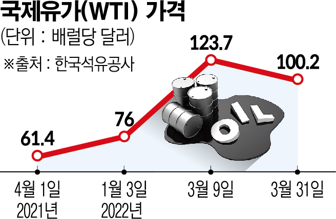 최근 국제유가는 배럴 당 130달러에 육박할 만큼 급격하게 치솟았다. 지난해 4월 61달러 수준이었던 서부텍사스산원유(WTI) 가격은 올해 초 80달러 아래를 밑돌더니 지난 3월 123.70달러로 정점을 찍었다. 우크라이나를 침공한 러시아에 대해 서방 국가들이 제재를 강화한 영향이다. 이날 WTI는 100달러 수준으로 안정화 된 듯 보이나 연초 가격과 비교하면 여전히 높다. 국내 수입 비중이 큰 두바이유도 비슷한 추세다. 유가 급등은 플라스틱, 철, 고무 등 자재 가격이 줄줄이 밀어올리면서 중소기업계 전반에 원가 부담을 가중시키고 있다.