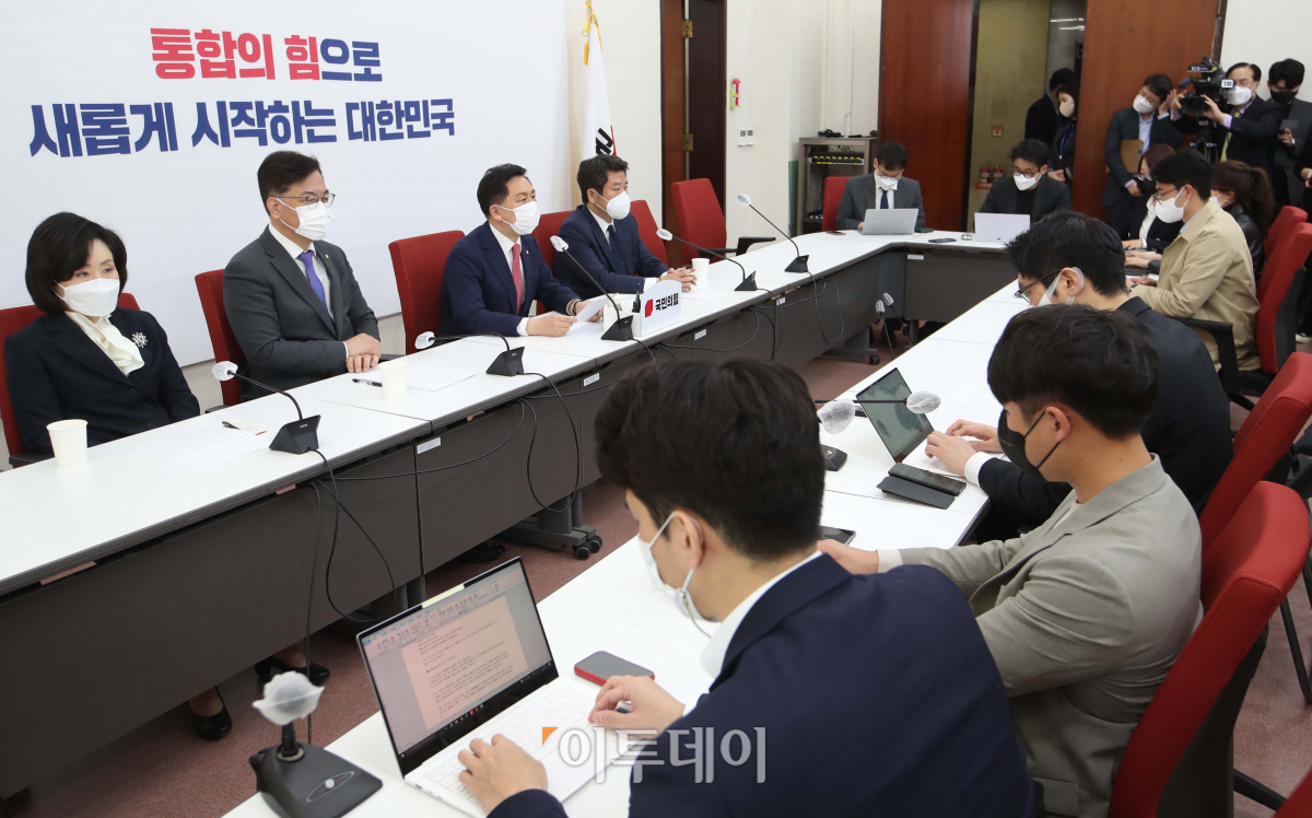 김기현 국민의힘 원내대표가 7일 서울 여의도 국회에서 열린 퇴임 기자간담회에서 발언하고 있다.