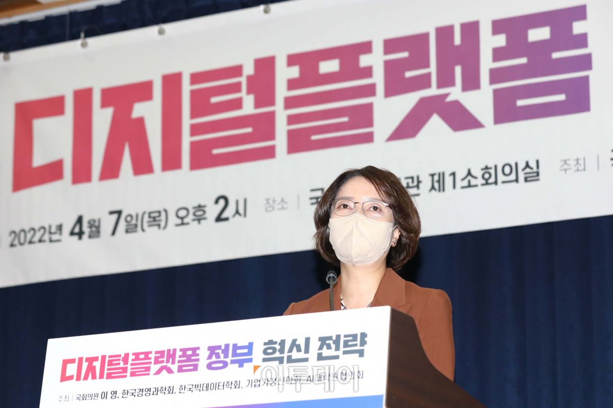 국민의힘 이영 의원이 7일 오후 국회 의원회관에서 열린 '디지털플랫폼 정부 혁신 전략' 세미나에서 개회사를 하고 있다.