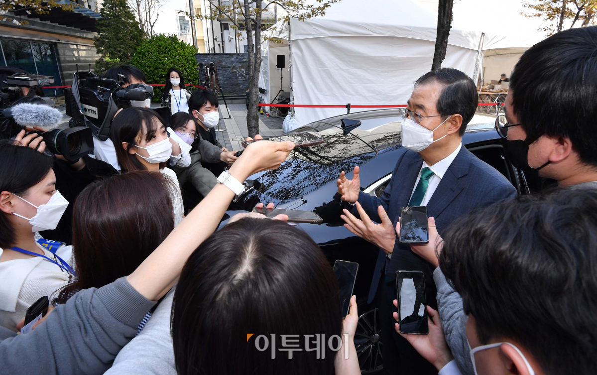 한덕수 국무총리 후보자가 10일 서울 종로구 통의동 금융감독원 연수원에 마련된 대통령직인수위원회 사무실에서 취재진의 질문에 답하고 있다. 인수위사진기자단
