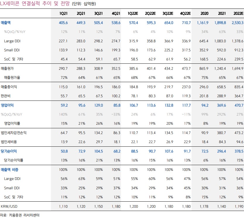 LX세미콘, 1분기ㆍ연간 영업이익 전망치 상회 ‘매수’ - 키움증권