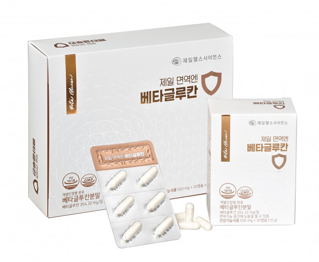 ‘제일 면역엔 베타글루칸’은 미생물 발효로 얻은 86% 이상의 순도 높은 베타글루칸 원료를 사용해 면역기능 증진에 도움을 줄 수 있는 건강기능식품이다.