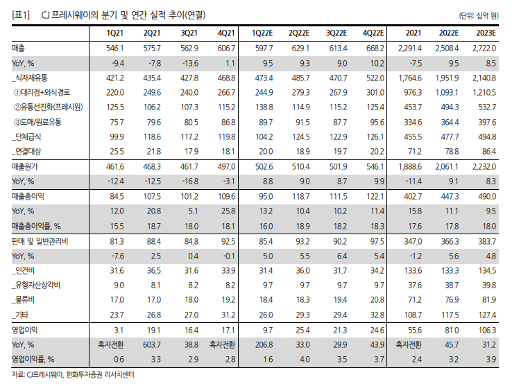 그러면서 CJ프레시웨이가 2분기엔 분기 사상 최대 실적을 기록할 것으로 내다봤다.
