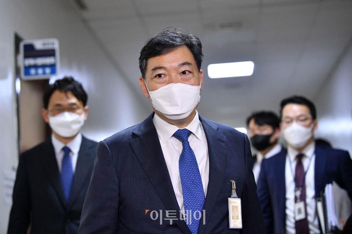 김오수 검찰총장이 19일 오후 서울 여의도 국회에서 열린 법제사법위원회 법안심사제1소위원회 회의에서 '검수완박' 법안 입법과 관련한 의견 발표를 앞두고 입장을 말하고 있다.