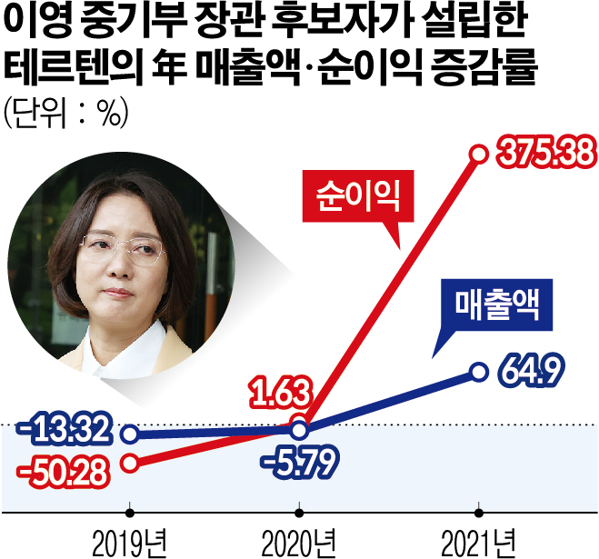 [단독] 이영 중기부장관 후보자 설립 '테르텐'…갑작스레 순익 375%↑흑자전환 논란