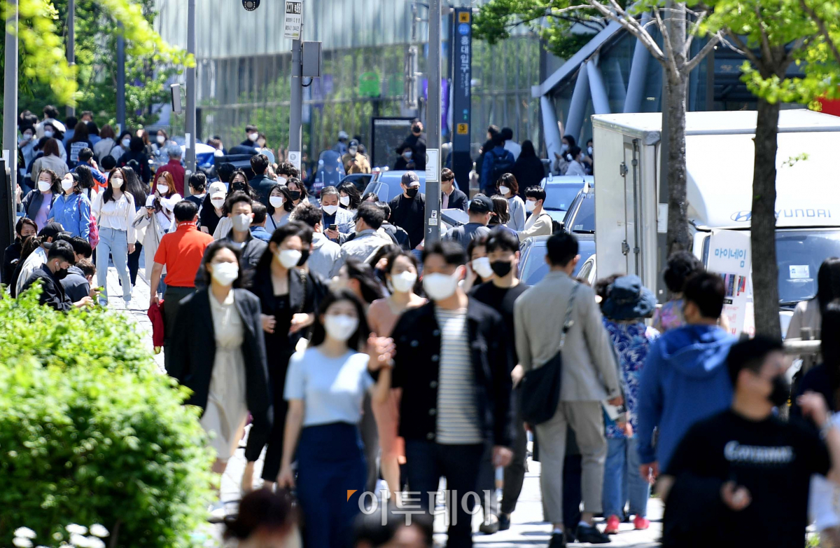 실외 마스크 착용 의무 해제를 하루 앞둔 1일 서울 마포구 경의선숲길이 봄나들이를 나온 시민들로 붐비고 있다.