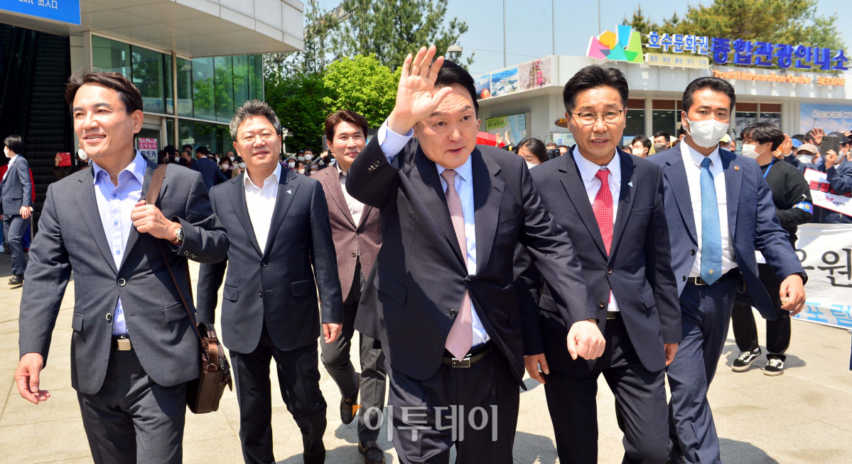 [포토] 춘천 시민들에게 인사하는 윤석열 당선인