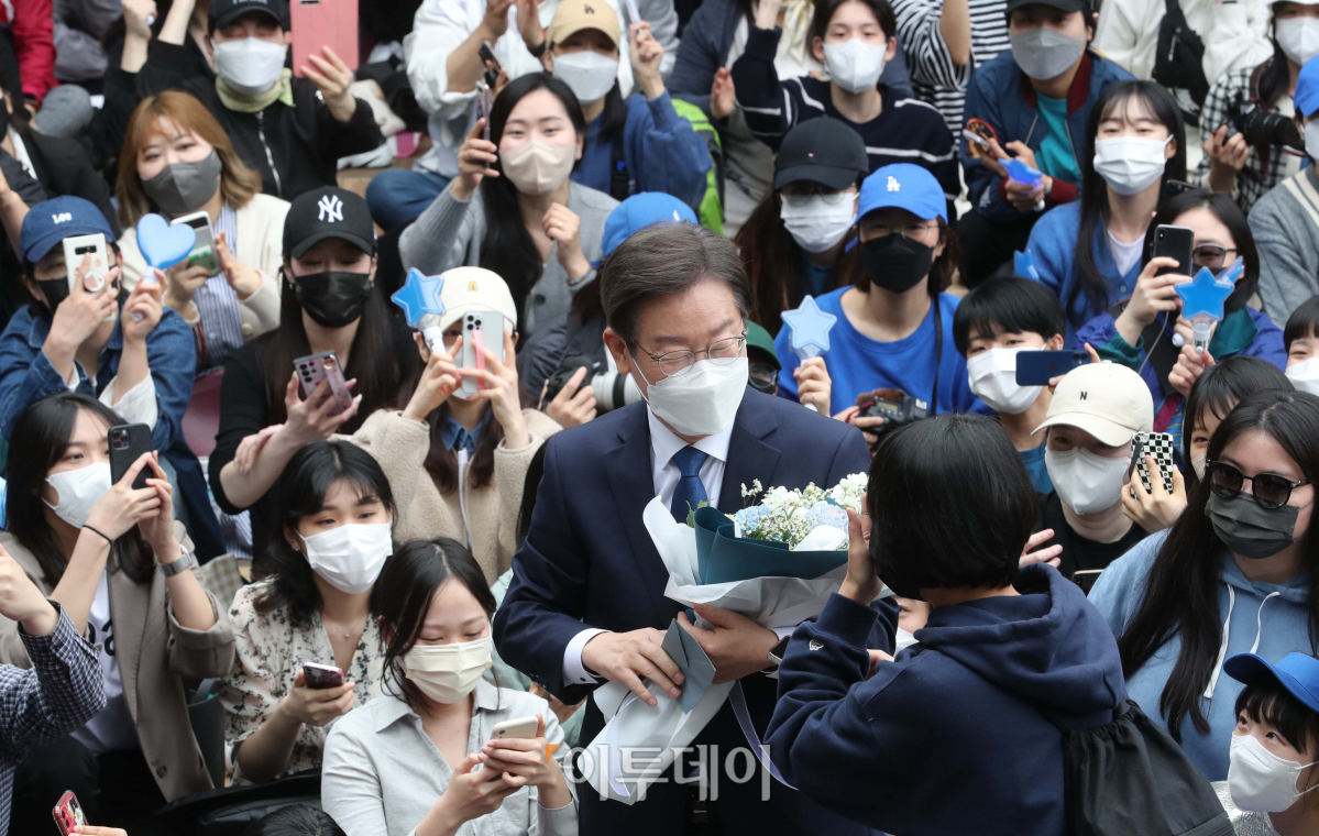 [포토] 지지자에게 꽃다발 받은 이재명