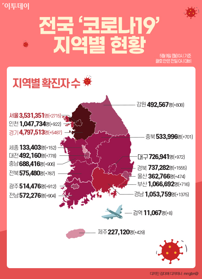 질병관리청 중앙방역대책본부에 따르면 9일 0시 기준 코로나19 확진자는 전날 0시 발표 때보다 2만601명 늘었다.