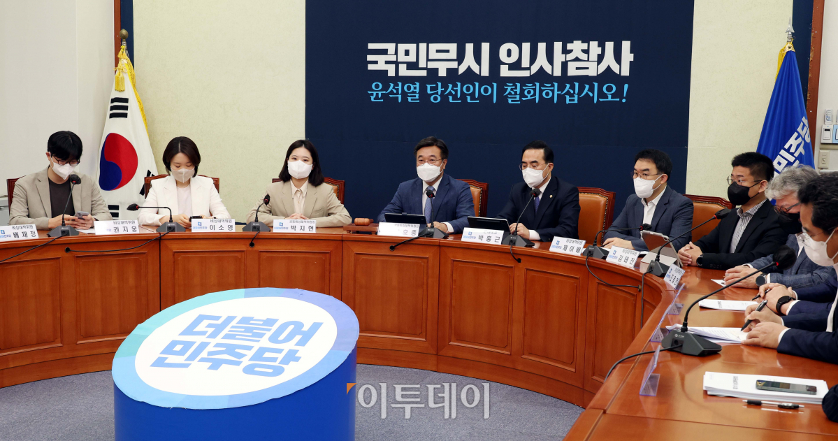 9일 국회에서 열린 더불어민주당 비상대책위원회의에서 윤호중 공동비상대책위원장이 발언을 하고 있다.