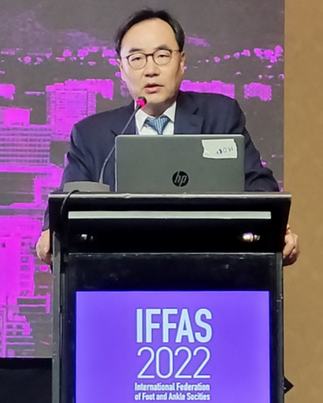 이 교수는 지난달 말 칠레 산티아고에서 열린 ‘세계족부관절학회(IFFAS 2022, International Federation of Foot and Ankle Socirties) 학술대회에서 임기 2년의 신임 회장으로 취임했다. 세계족부족관절학회(IFFAS)는 족부족관절학 분야의 연구, 진료, 교류와 발전을 위해 아시아‧북미‧유럽‧남미‧오세아니아 5개 대륙의 정형외과 전문의들이 모인 학술단체다.