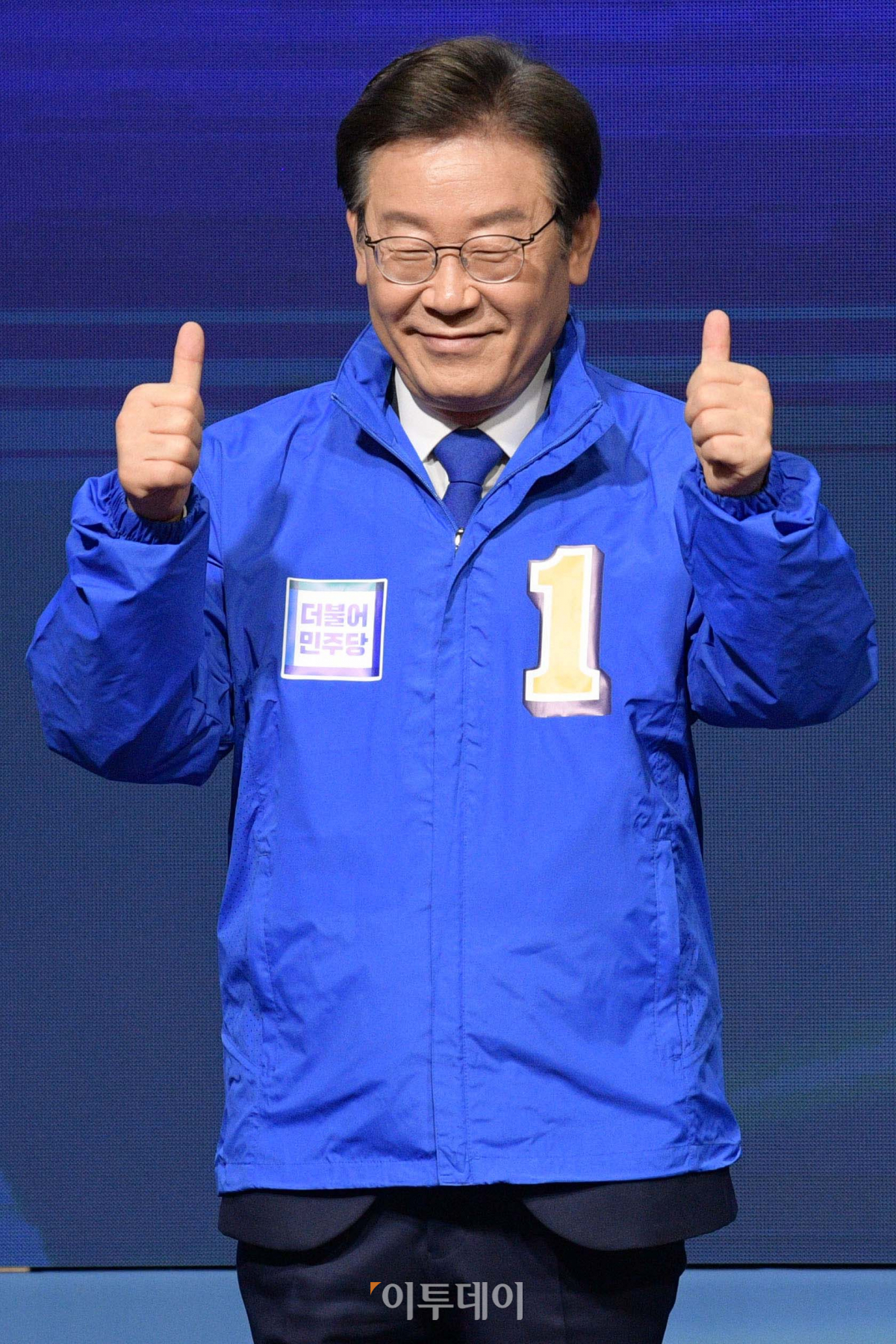 [포토] 민주당 통합선대위 출범식 찾은 이재명