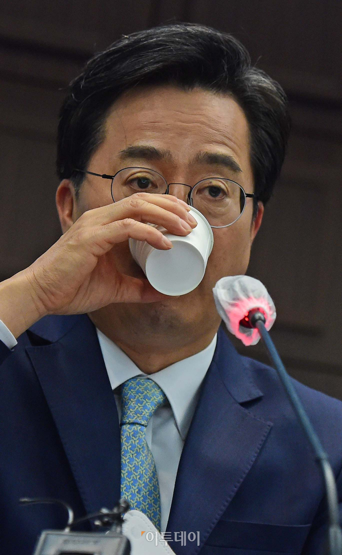 김동연 더불어민주당 경기도지사 후보가 18일 서울 중구 프레스센터에서 열린 관훈토론회에서 물을 마시고 있다. 국회사진취재단