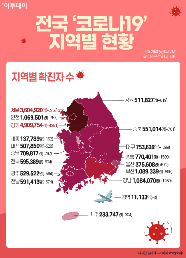 질병관리청 중앙방역대책본부에 따르면 26일 0시 기준 코로나19 확진자는 전날 0시 발표 때보다 1만8816명 늘었다.