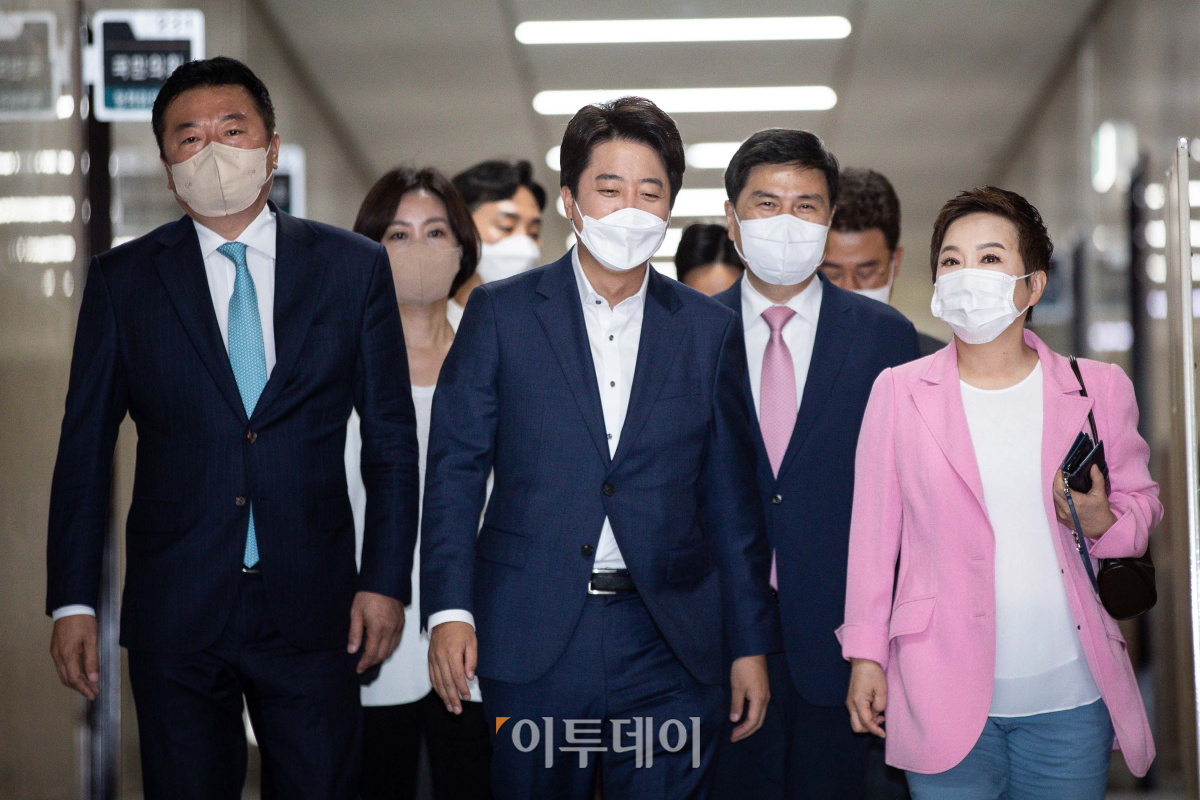 [포토] 밝은 표정으로 회의 참석하는 이준석 대표