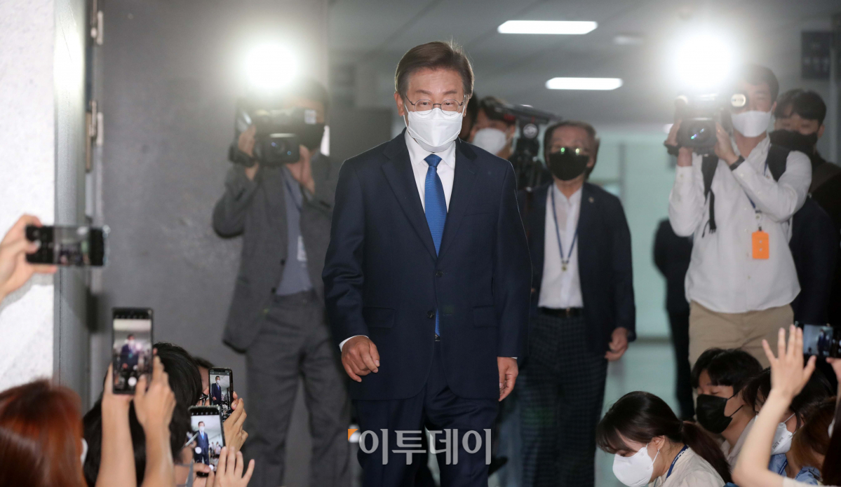 이재명 더불어민주당 국회의원이 7일 오전 서울 여의도 국회 의원회관 내 의원실로 첫 등원을 하고 있다.