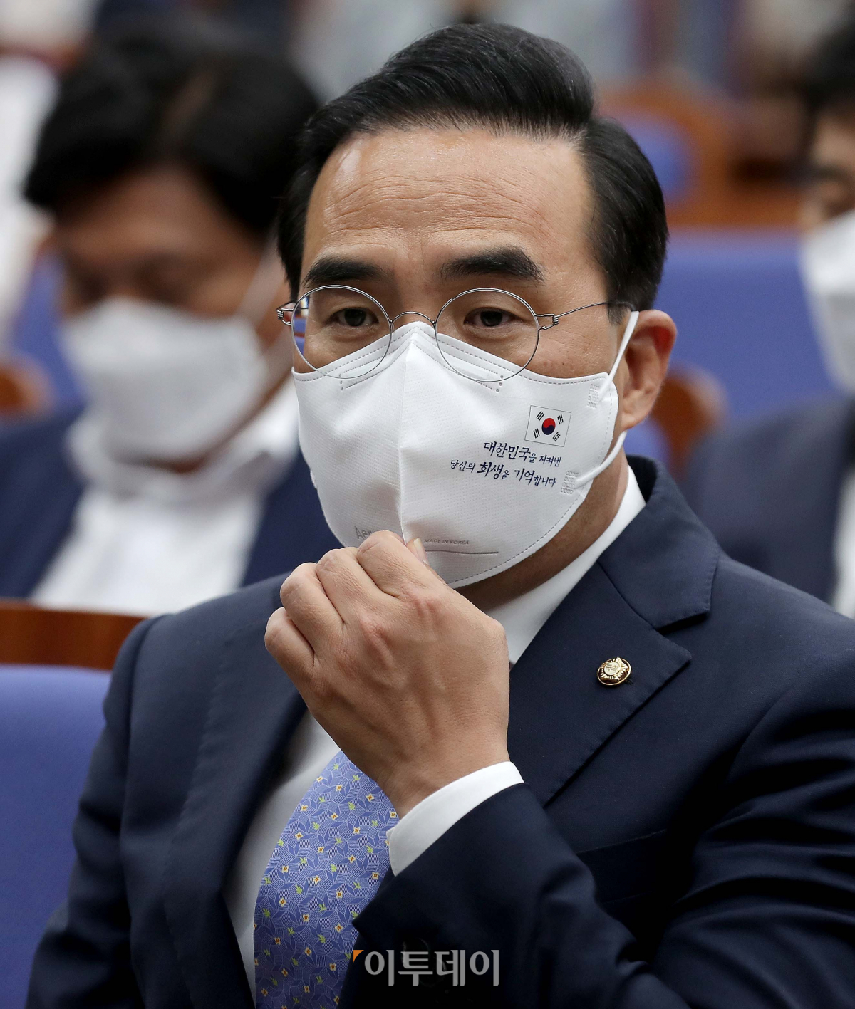 박홍근 더불어민주당 당대표 직무대행 겸 원내대표가 7일 오후 서울 여의도 국회에서 열린 의원총회에서 생각에 잠겨 있다.