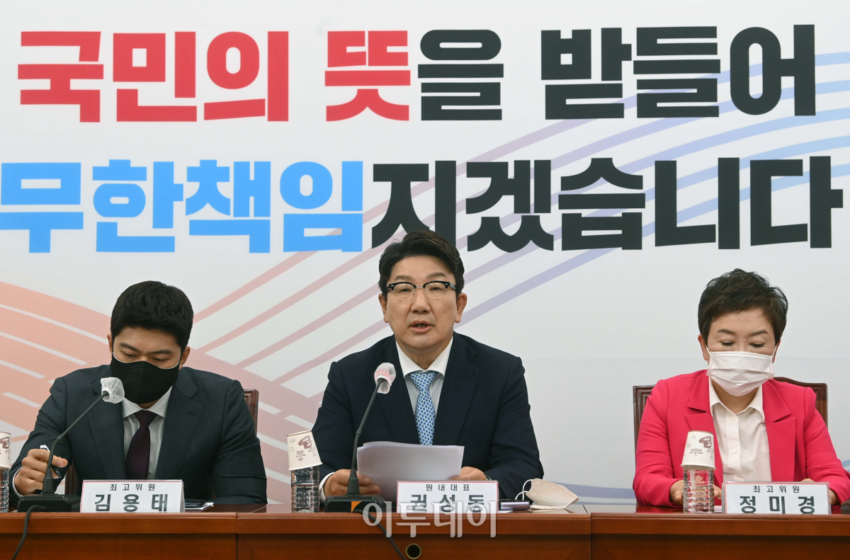 9일 오전 국회에서 열린 국민의힘 최고위원회의에서 권성동 원내대표가 모두 발언을 하고 있다.