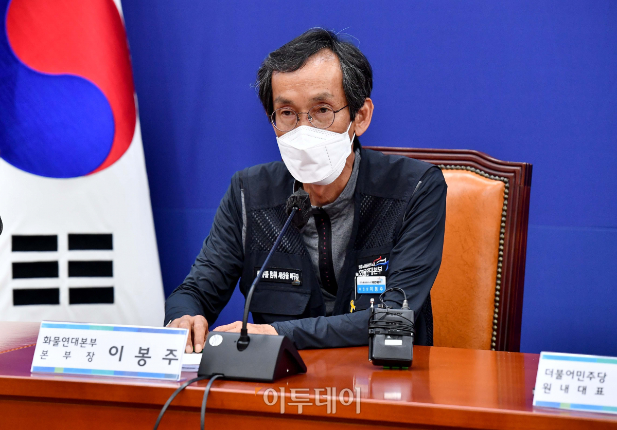 이봉주 민주노총 공공운수노조 화물연대본부 본부장이 9일 서울 여의도 국회에서 열린 화물노동자 생존권 보호를 위한 간담회에서 발언 하고 있다.
