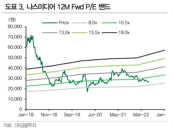 DB금융투자는 10일 나스미디어에 대해 “실적 전망치는 소폭 상향했으나, 기존 목표주가와의 높은 괴리율 등을 고려했다”며 목표주가를 4만3000원에서 3만7000원으로 낮췄다. 투자의견은 ‘매수’를 유지했다.
