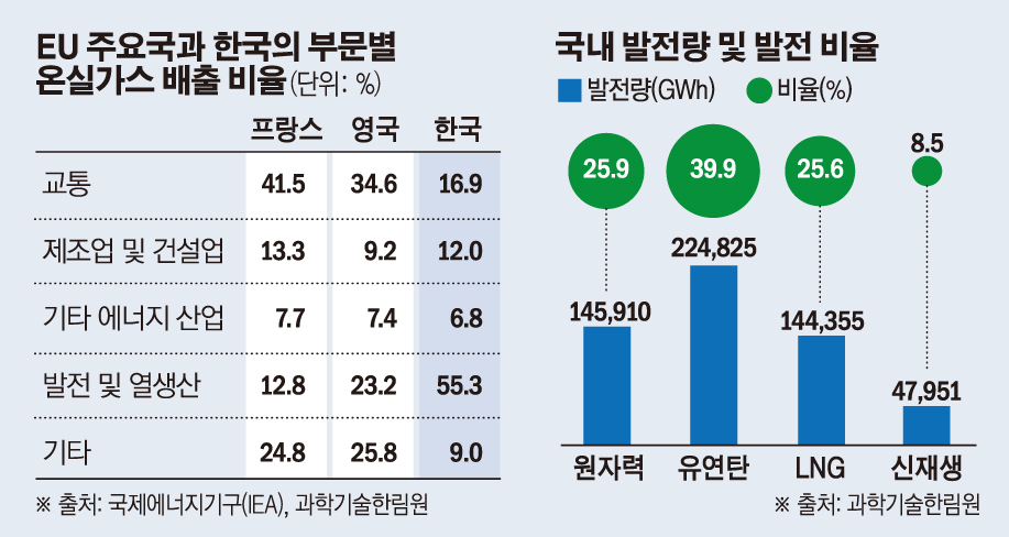 부족한 인프라가 단기간 갖춰지기도 어렵다. 전기차 생애 주기에서 탄소배출을 줄이기 위해서는 친환경 에너지가 필수적이다. 그러나 유럽과 달리 우리나라는 풍력, 태양광 발전 등 친환경 에너지원을 얻기 어려운 환경이다. 이로 인해 전력을 얻는 과정에서 막대한 탄소를 배출하게 되므로 우리나라에서는 전기차의 탄소배출이 하이브리드보다 많다는 분석도 나오고 있다. 배터리 원자재의 대부분을 수입에 의존하는 구조도 문제다. 이를 고려하면 전기차로 전환하는 것만이 ‘친환경’이라고 말하기는 쉽지 않다.