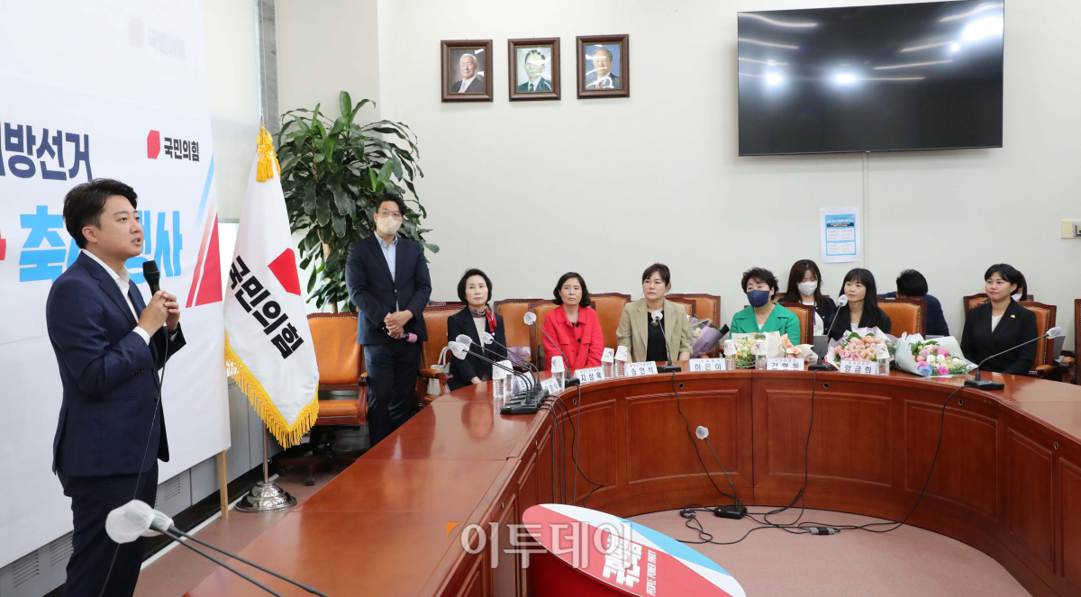 국민의힘 이준석 대표가 13일 서울 여의도 국회에서 열린 제8회 동시지방선거 호남 당선자 축하행사에서 인사말을 하고 있다.