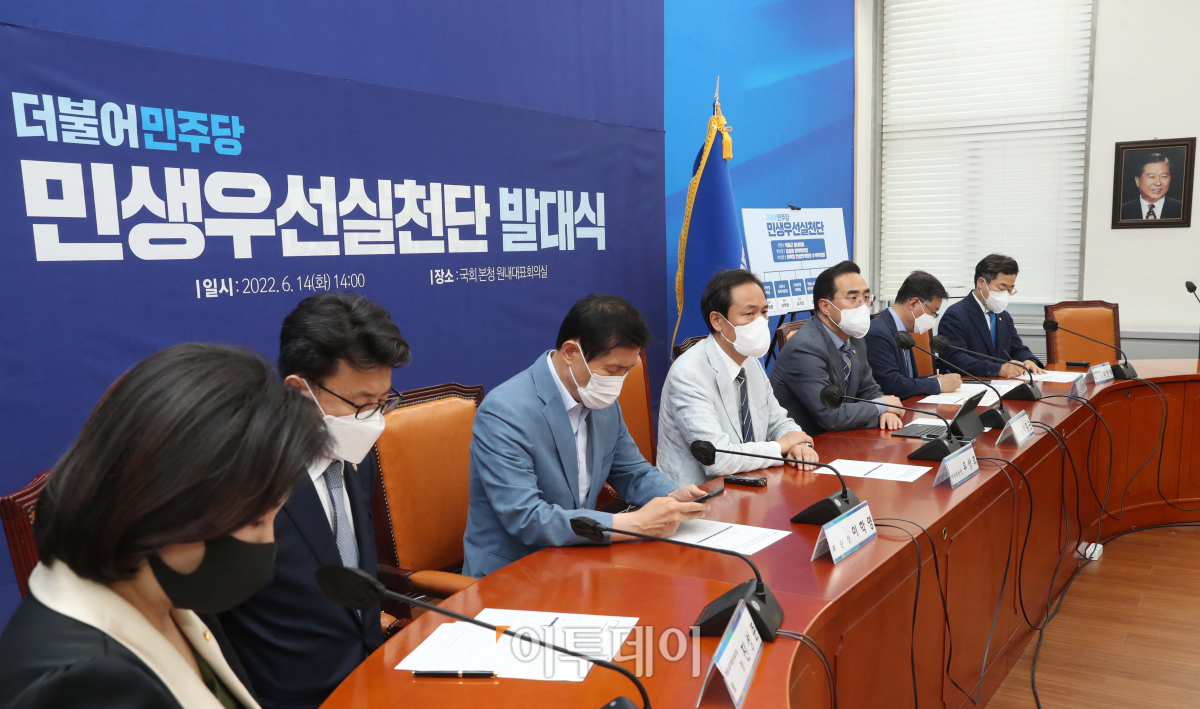 더불어민주당 박홍근 원내대표가 14일 오후 서울 여의도 국회에서 열린 더불어민주당 민생우선실천단 발대식에서 발언하고 있다.