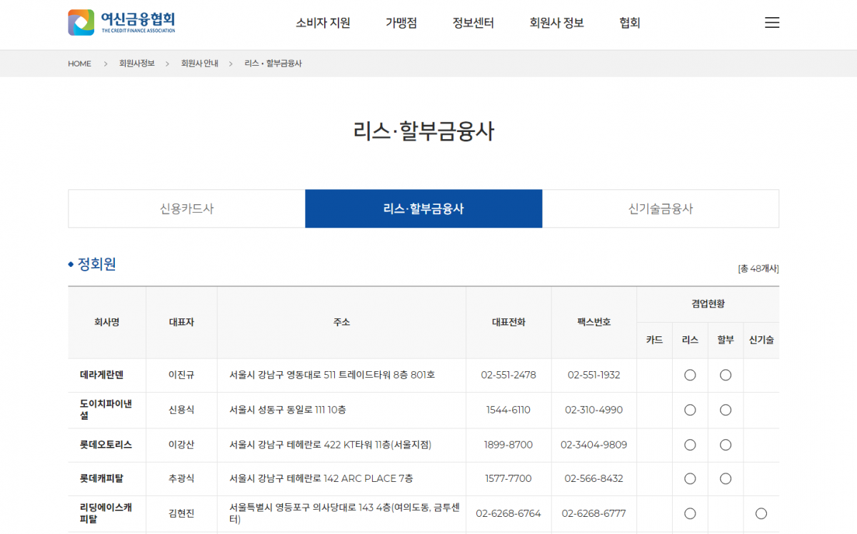 자동차 할부금융 상품은 현재 기준, 여신금융협회 정회원사 자격이 있는 45개 캐피탈사에서만 취급하고 있다. 자동차 할부금융 서비스를 제공할 수 있는 대부업체는 없다. 하지만 제3금융권을 총괄하는 한국대부금융협회에 등록된 업체 중 100곳이 넘는 대부업체(117개)가 사명에 '캐피탈'을 포함하고 있다.