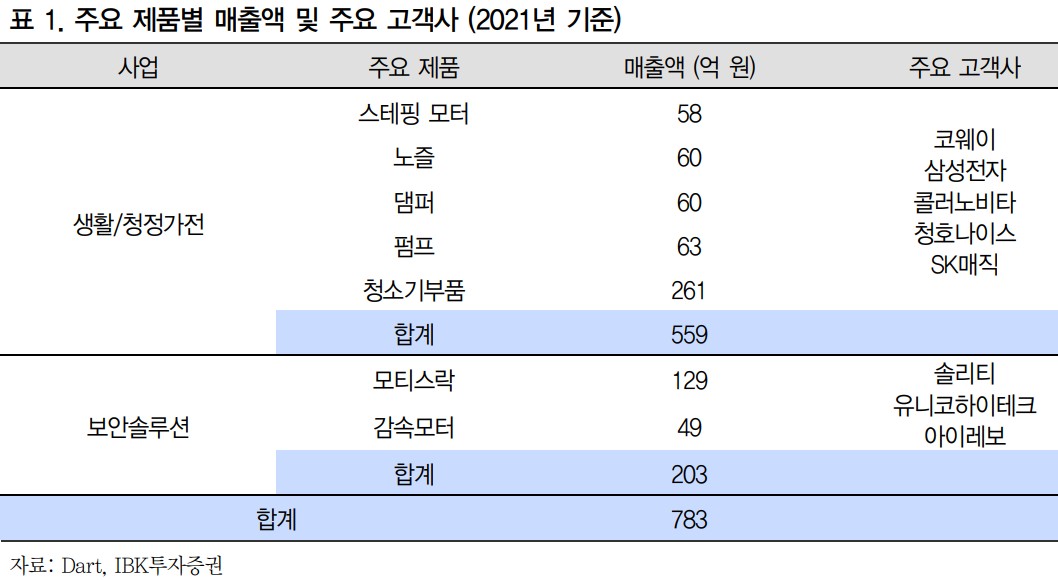 이건재 IBK투자증권 연구원은 “이랜시스는 코스닥 상장사 이랜텍의 계열사로 2002년 설립해 생활ㆍ청정가전과 보안 솔루션 장치에 사용되는 부품 생산업을 영위하고 있다”며 “주요 사업은 비데, 정수기, 청소기 등의 생활ㆍ청정가전 사업과 디지털 도어록의 보안 솔루션 장치 사업으로 2021년 기준 매출 비중은 71%, 26%로 구분된다”고 했다.
