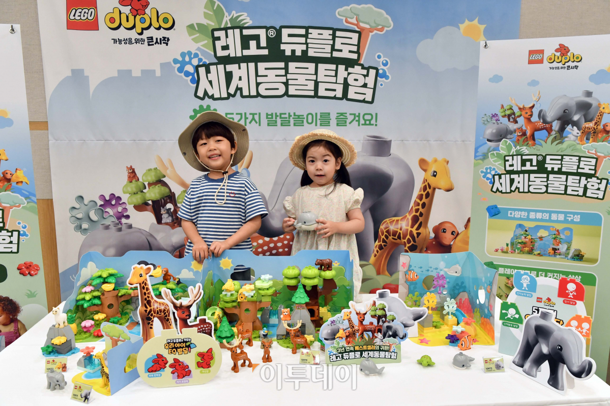 레고코리아가 22일 서울 중구 스페이스 라온에서 '레고 듀플로 세계동물탐험' 시리즈 신제품 출시 행사를 갖고 있다. '레고 듀플로'는 놀이를 통해 18~48개월 영유아의 성장과 발달을 돕기 위해 개발된 시리즈로 이번 ‘세계동물탐험’은 유럽, 남미, 바다, 아프리카 등 총 4종이며 세계 각지의 자연 환경과 동물에 대해 배울 수 있다.