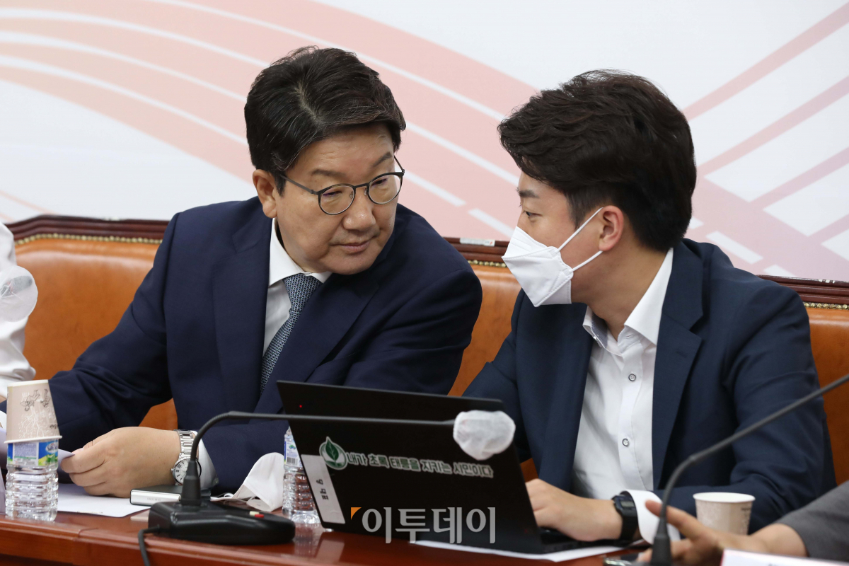 [포토] 대화하는 이준석 대표-권성동 원내대표