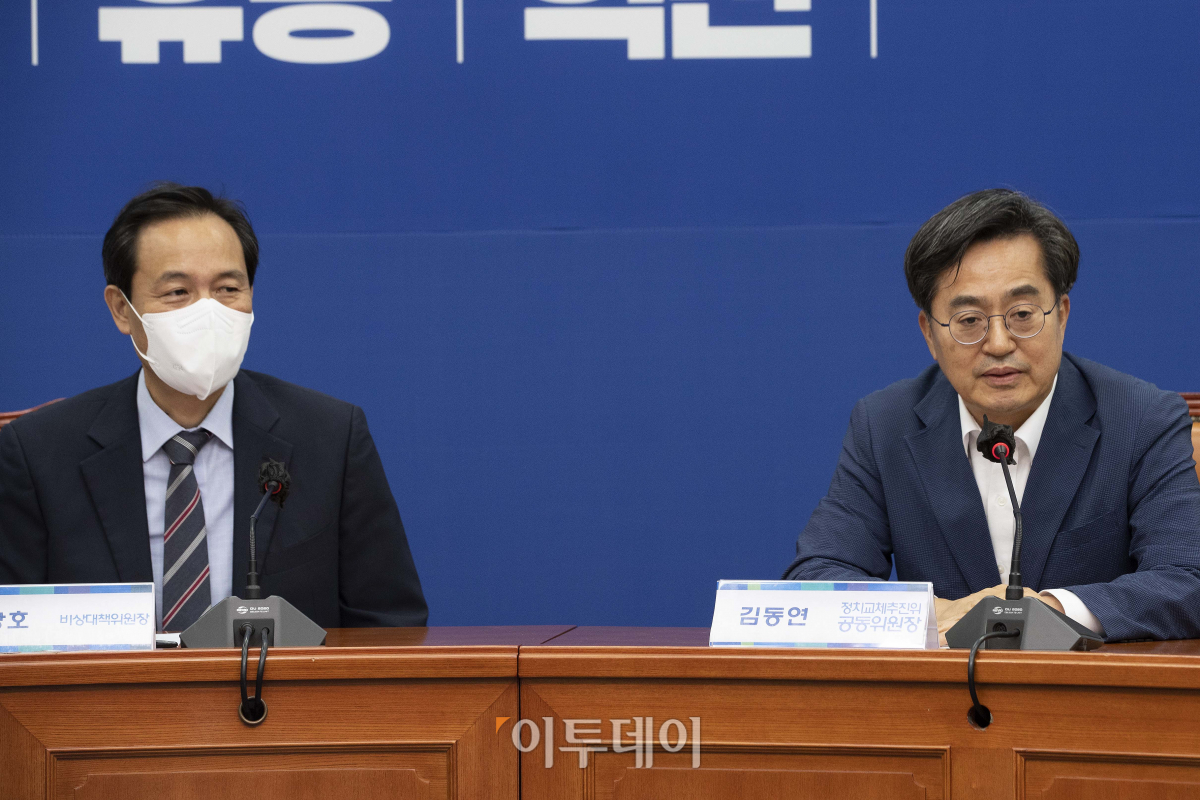 김동연 경기도지사 당선인이 28일 오후 서울 여의도 국회에서 열린 민주당 정치교체추진위원회 회의에 참석해 모두 발언을 하고 있다. 김 당선인은 더불어민주당 정권교체추진위원회 공동위원장을 맡고 있다.