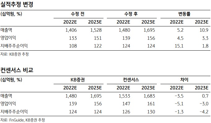 이창민 KB증권 연구원은 “비에이치의 2022년 실적은 매출액 1조4795억 원, 영업이익 1395억 원으로 추정돼 역대 최대 실적이 기대된다”며 “경기 둔화 영향으로 2022년 글로벌 스마트폰 판매량은 전년 대비 6% 감소할 것으로 예상되나, 북미 고객사의 스마트폰 판매량은 전년과 유사한 수준을 기록할 것”이라고 전망했다.