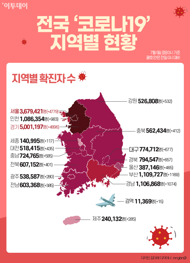 신규 확진자 1만8147명 중 4779명은 서울에서 발생했으며, 부산 1169명, 대구 677명, 인천 983명, 광주 280명, 대전 435명, 울산 465명, 세종 117명, 경기 4896명, 강원 532명, 충북 412명, 충남 585명, 전북 401명, 전남 385명, 경북 657명, 경남 1074명, 제주에서 285명이 각각 확진됐다. 확진자 1만8147명 중 지역발생 확진자는 1만7976명으로 집계됐다. 검역소 확진자도 15명이 추가됐다.